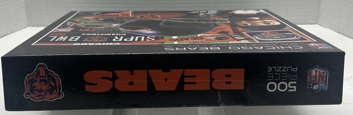 This Chicago Bears 500 Piece Puzzle is a rare vintage collectible featuring a nostalgic collage of images related to the National Football League (NFL) and the Chicago Bears team. Measuring 24 x 18 inches when completed, this sealed puzzle offers football fans a fun and challenging activity to enjoy while also showcasing their team pride. This is a perfect piece for collectors or fans looking to add a unique piece to their sports memorabilia collection, this puzzle captures the spirit and history of the Chicago Bears. Thank you for your interest in our listing and please feel free to visit our store for more great items.