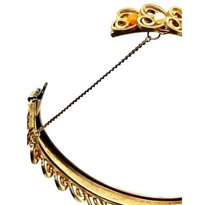 Very good vintage condition with light, age-consistent surface wear to the gold-tone finish. Filigree remains intact and dimensional, clasp functions properly, and the safety chain is present and secure.