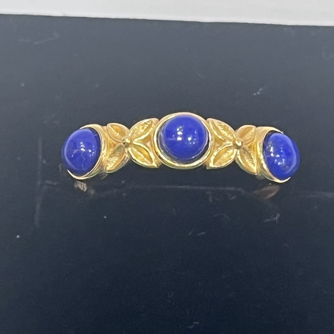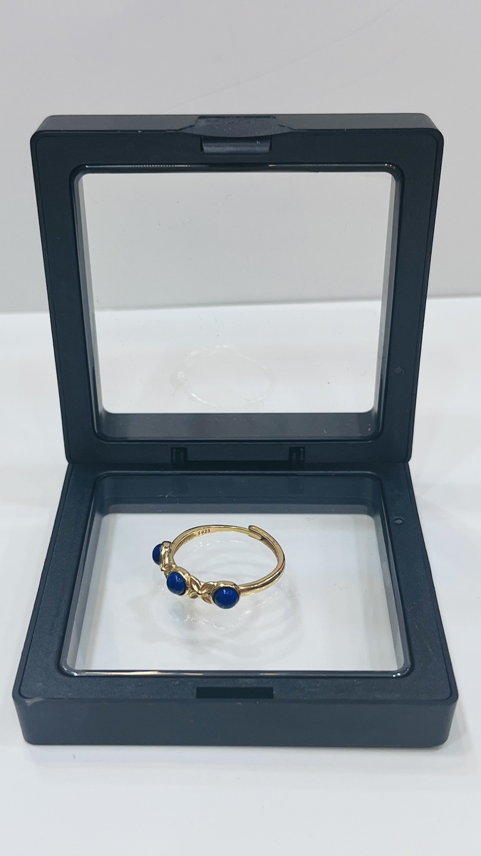 ? 925 Silver Gold Plated Lapis Lazuli Triple Stone Ring | 4mm | Adjustable ?