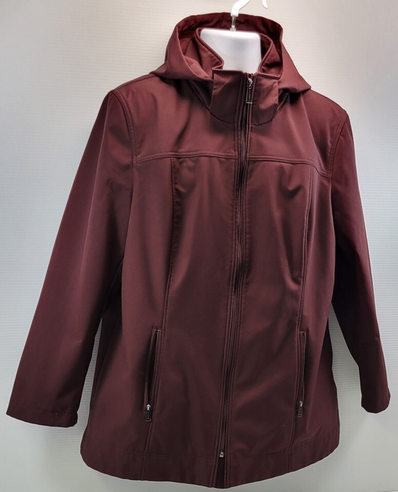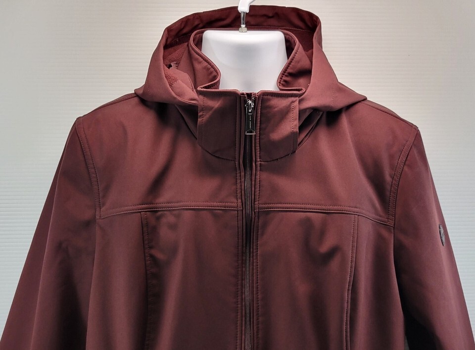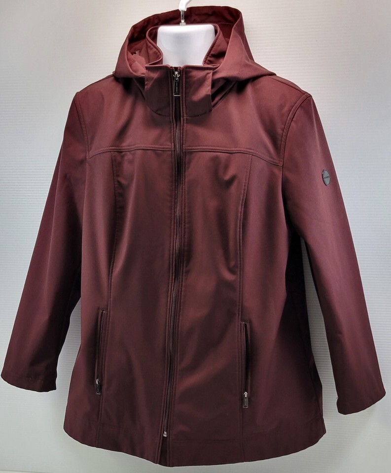 L1) Andrew Marc Woman Water Repellent Burgundy 4-Way Stretch Hooded Jacket XXL