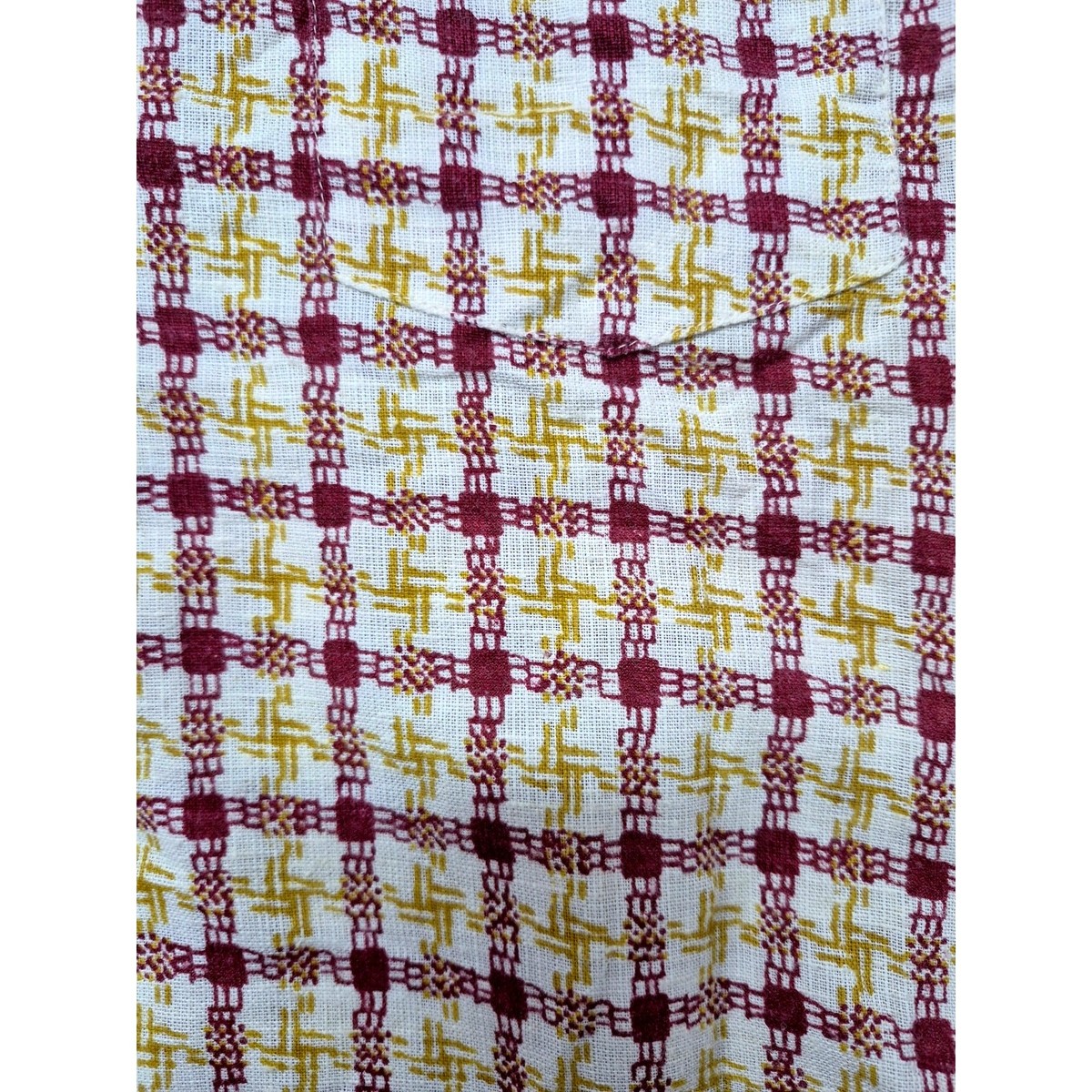Presenting a timeless piece of vintage children's wear: a 1970s J.C. Penney Towncraft Penn-Prest button-up shirt. This item features a classic yellow and red plaid pattern crafted from a durable and comfortable cotton-polyester blend. Appearing barely worn, this shirt is offered in excellent condition, making it a superb addition to any curated vintage collection or a stylish option for period-accurate costuming.
