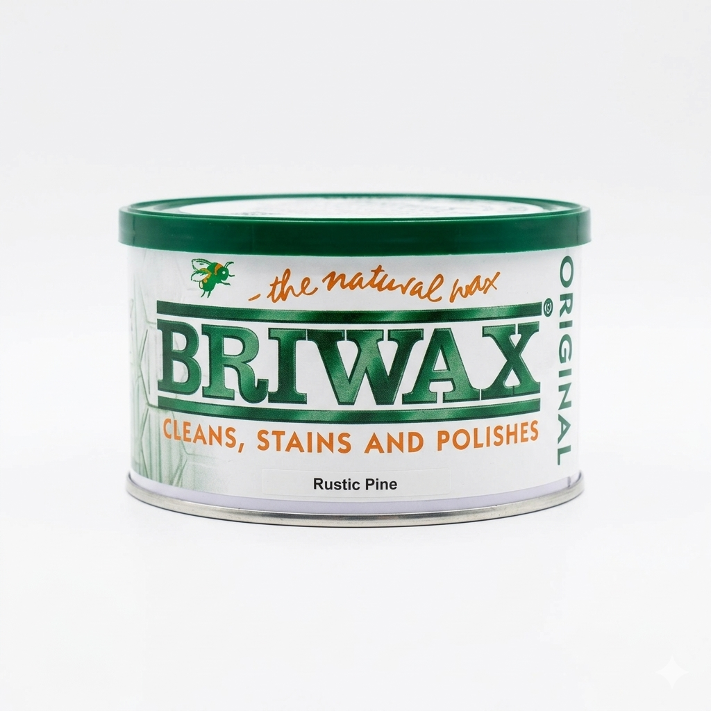 Briwax, Original Wax Polish is a blend of pure beeswax, carnauba wax, and cleaners. Ideal for sealed or unsealed furniture, wood carvings, turned wood, for floors, doors, and paneling. Briwax cleans and protects the wood, tiles, metalwork, marble, and more. Available in Rustic Pine wood shade to stain and wax in one operation. Briwax stains, seals and finishes new wood in one easy step. It retards oxidation on metal surfaces.