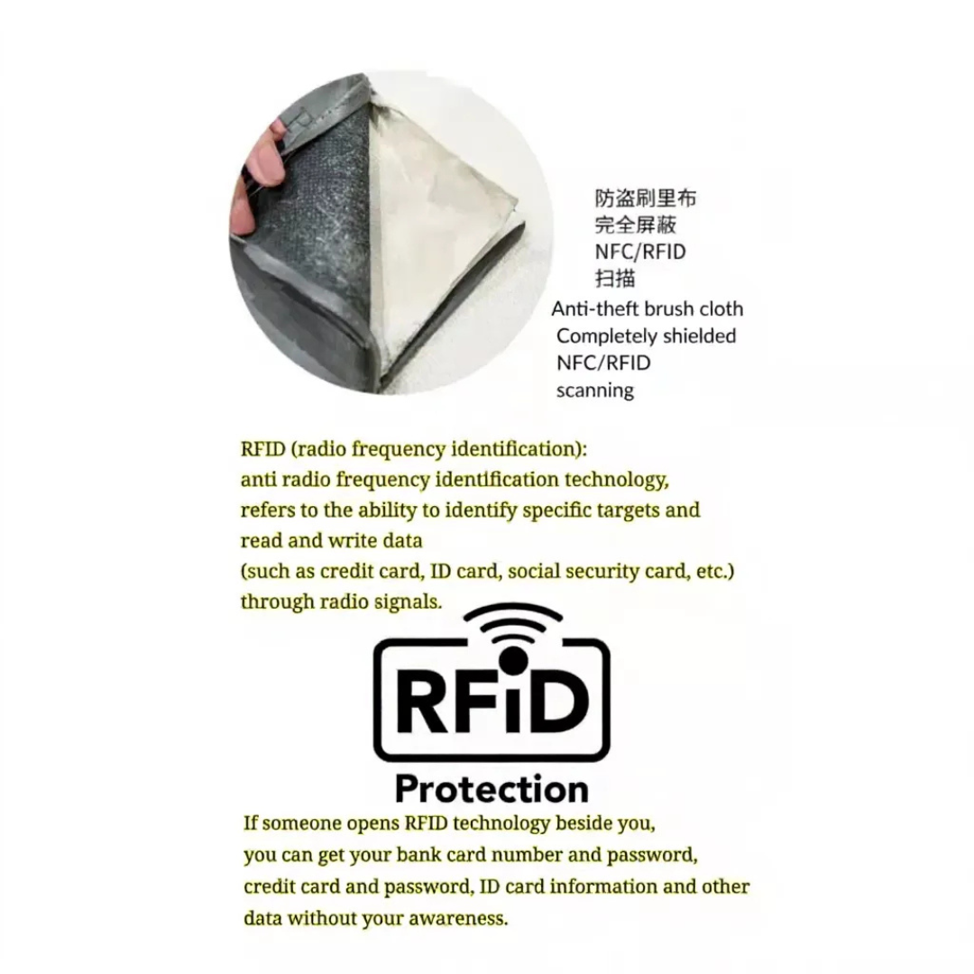 With built-in card slots and ID compartments, it helps you keep your passport, cards, and travel essentials neatly organized. The RFID blocking feature adds extra security by protecting your personal information from unauthorized scanning.