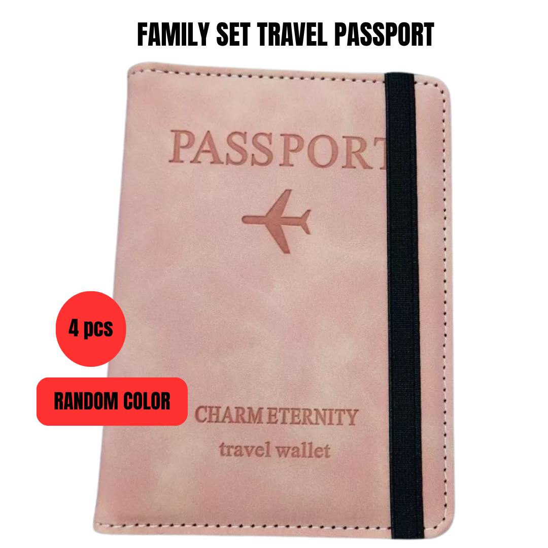 Family Set RFID Multi-Function Passport Holder PU Leather (4 pcs)