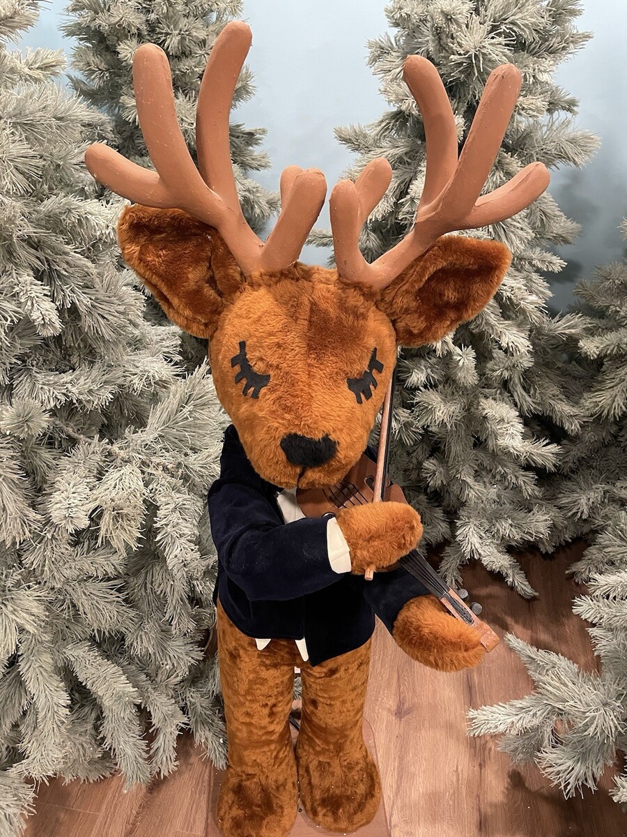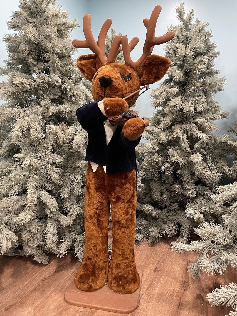 Vintage 60” Tall Animated Display Reindeer With Violin By David Hamberger