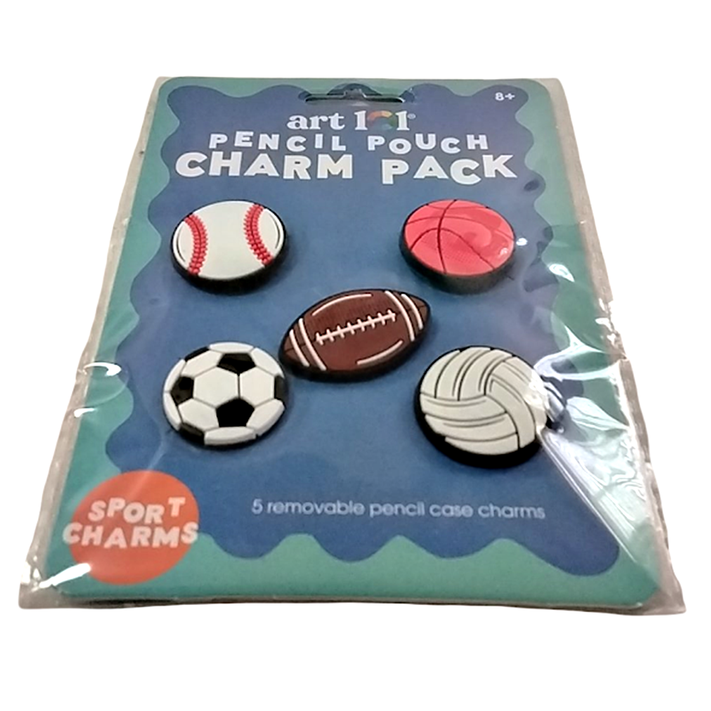 This listing is for a New ART101 Sports Charms Pencil Pouch Charm Pack 5-Pack.