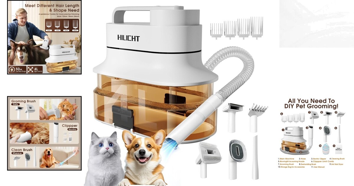 Features: Low Noise,Large Dust Cup,Washable Filter,Multiple Grooming Attachments,Easy Setup,Cleaner Grooming Process,Calm Operation,Designed for Home Grooming,Supports Regular Brushing