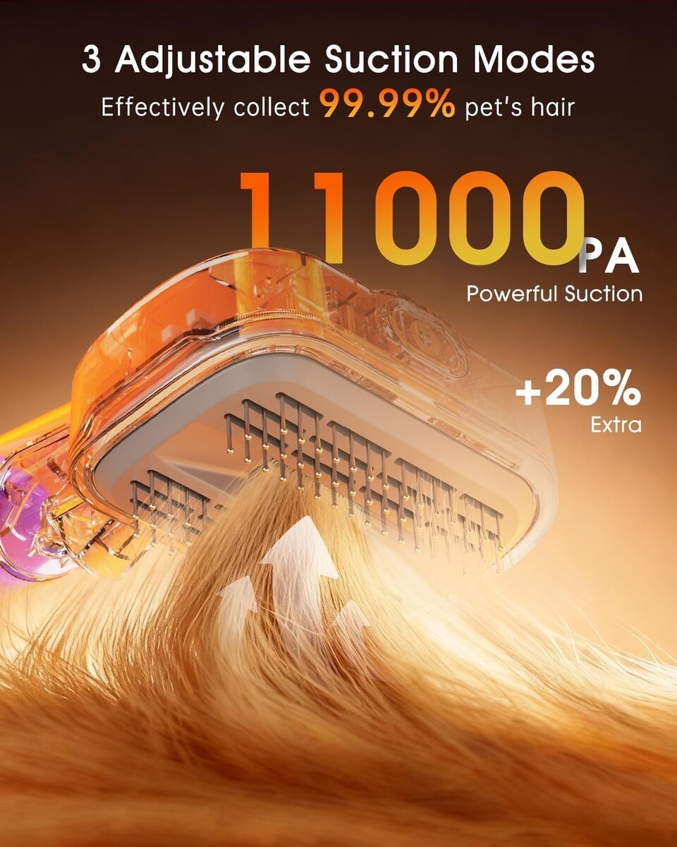Powerful Suction: Eliminate pet hair from your home with three adjustable suction levels tailored to your pet?s size and comfort, ensuring a thorough cleaning with ease.