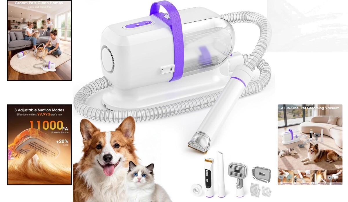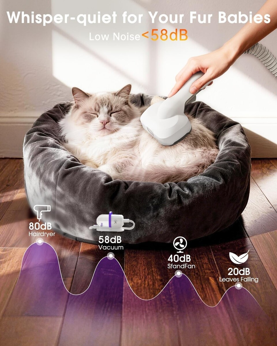 6 in 1 Functionality: This advanced grooming kit combines vacuuming and drying in one device, effectively sucking up to 99% of loose hair and dander while providing a gentle drying experience.