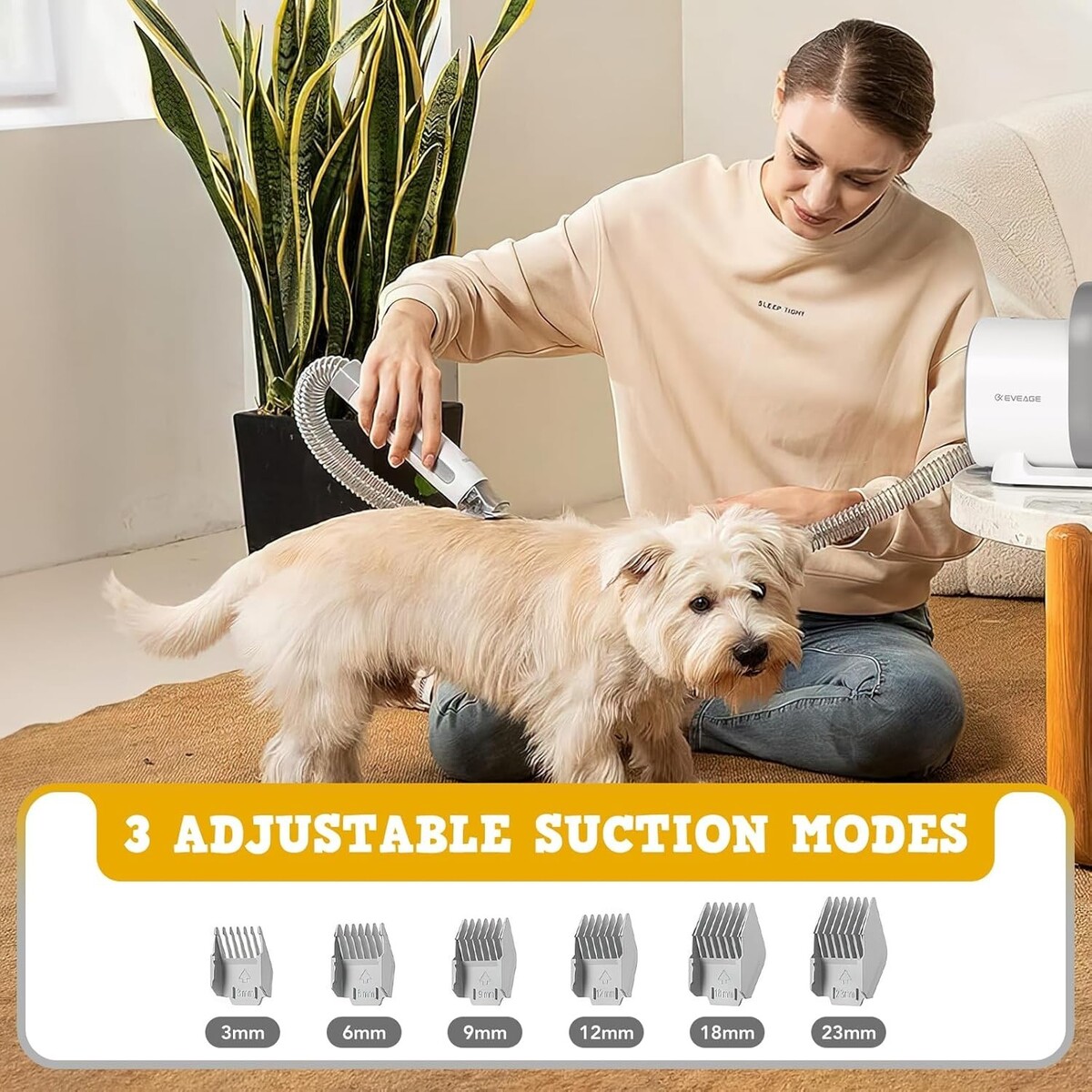 Low Noise Design: Operating at a gentle 60 dB, this grooming vacuum features 3 adjustable suction levels, making grooming a stress-free experience for your pet.