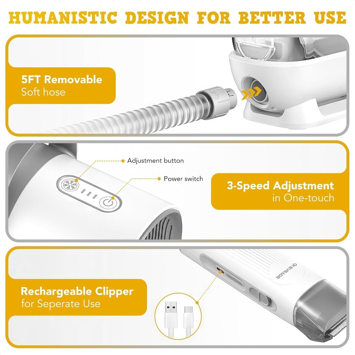 Grooming and Vacuuming All at Once: Our innovative grooming clippers come with an integrated vacuum function that collects 99% of pet hair, ensuring your home stays neat and mess-free.