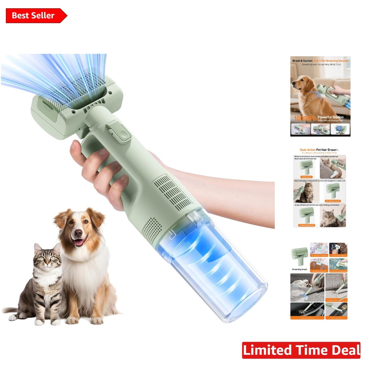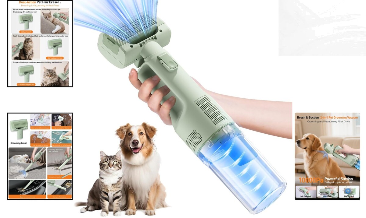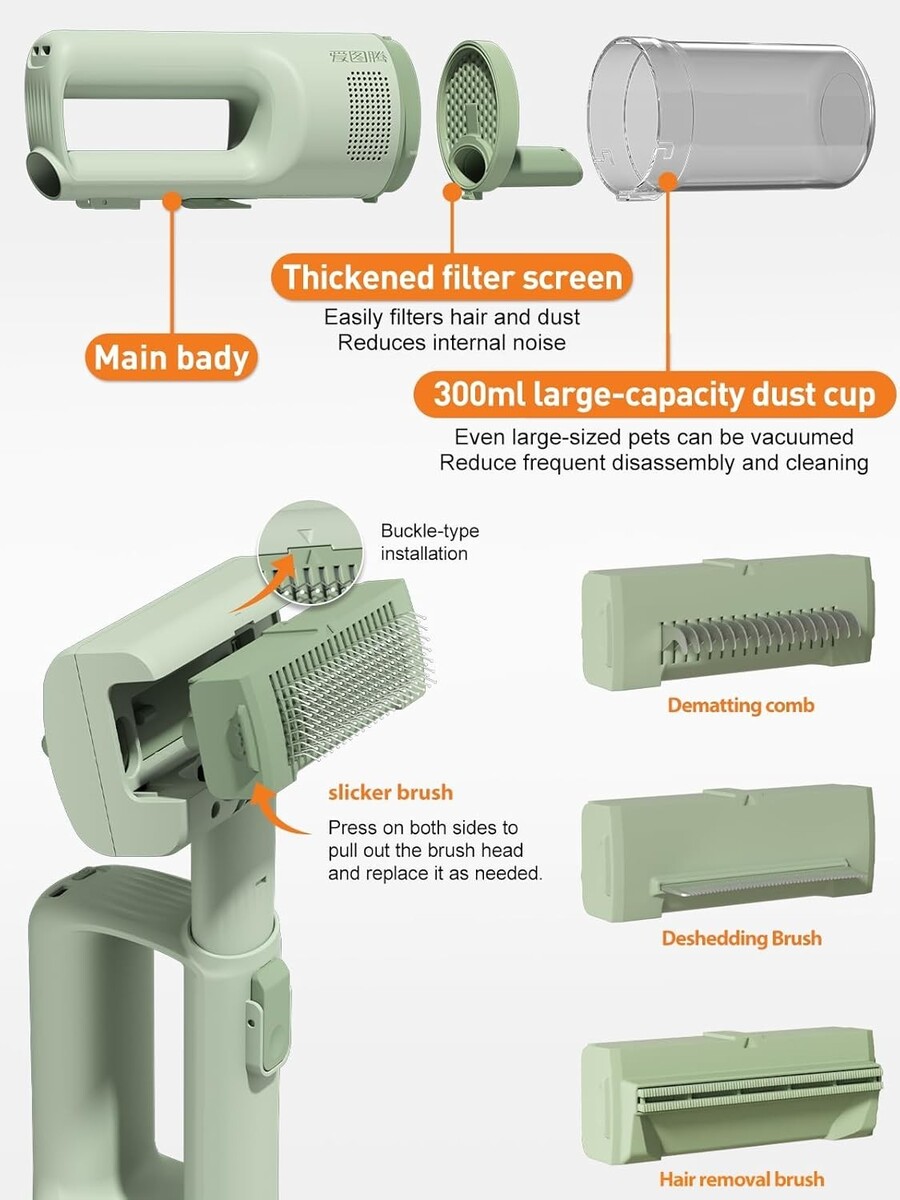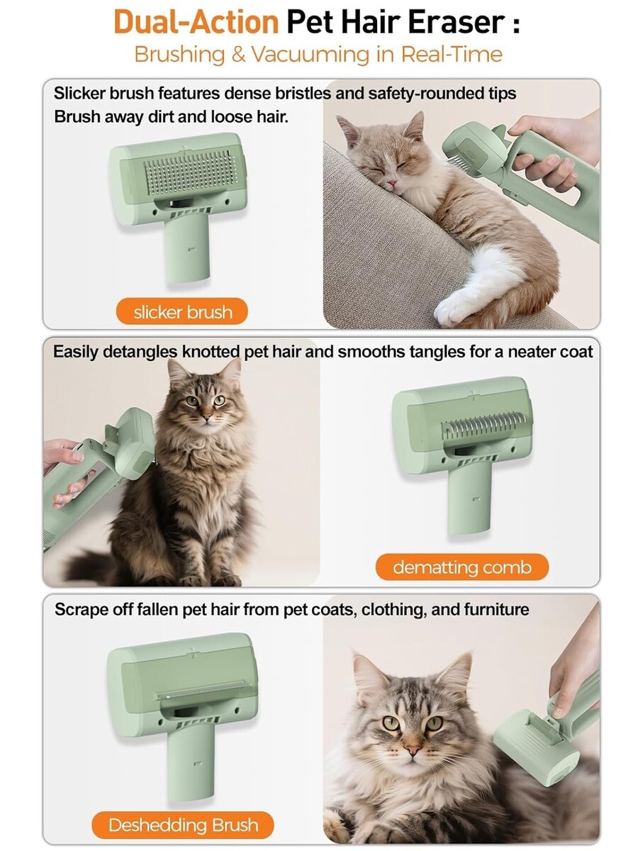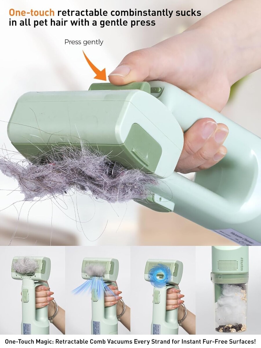 2-in-1 Grooming Vacuum: Combines a multi-functional brush with 10KPa suction power to effectively remove loose pet hair while grooming.