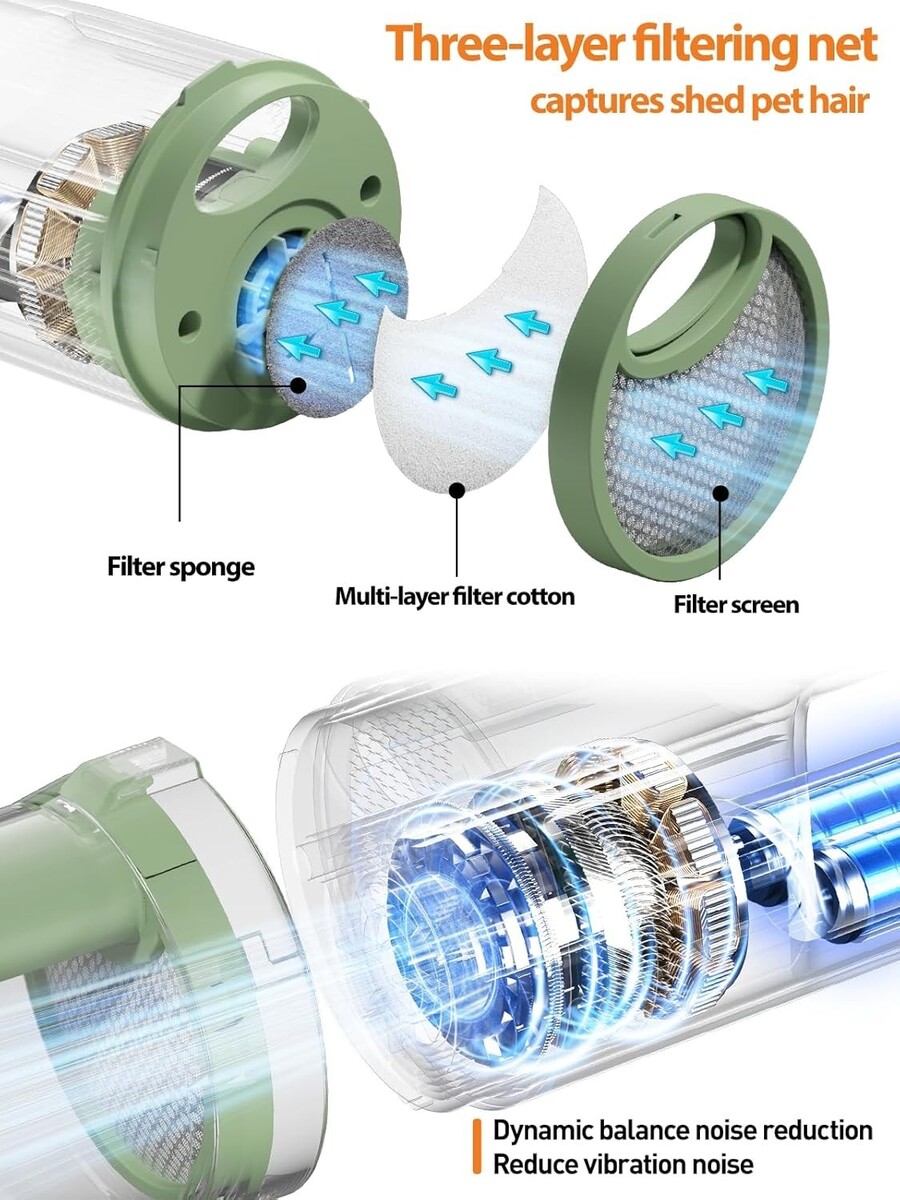 Low Noise Design: Utilizes dynamic balance noise reduction technology for a calming grooming experience, with suction levels operating below 60DB.
