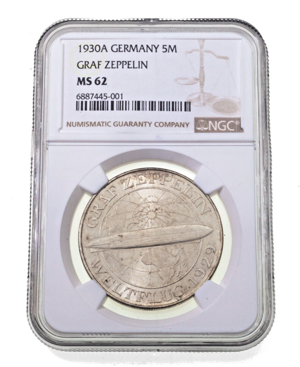 1930 Germany 5 Mark Graf Zeppelin Flight Graded by NGC as MS-62, KM 68