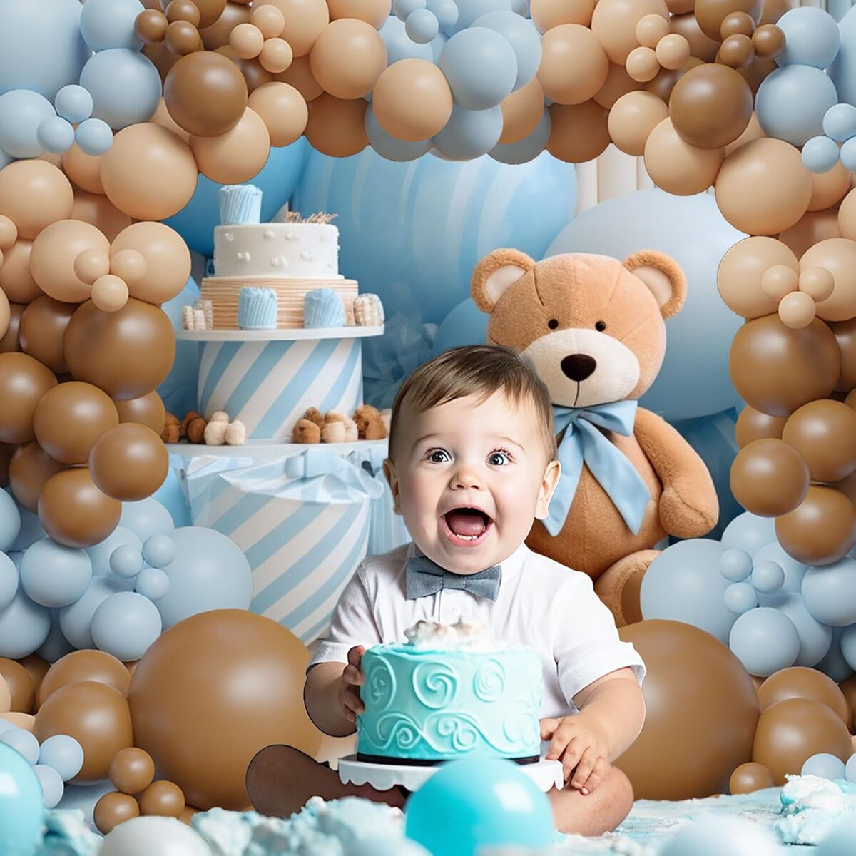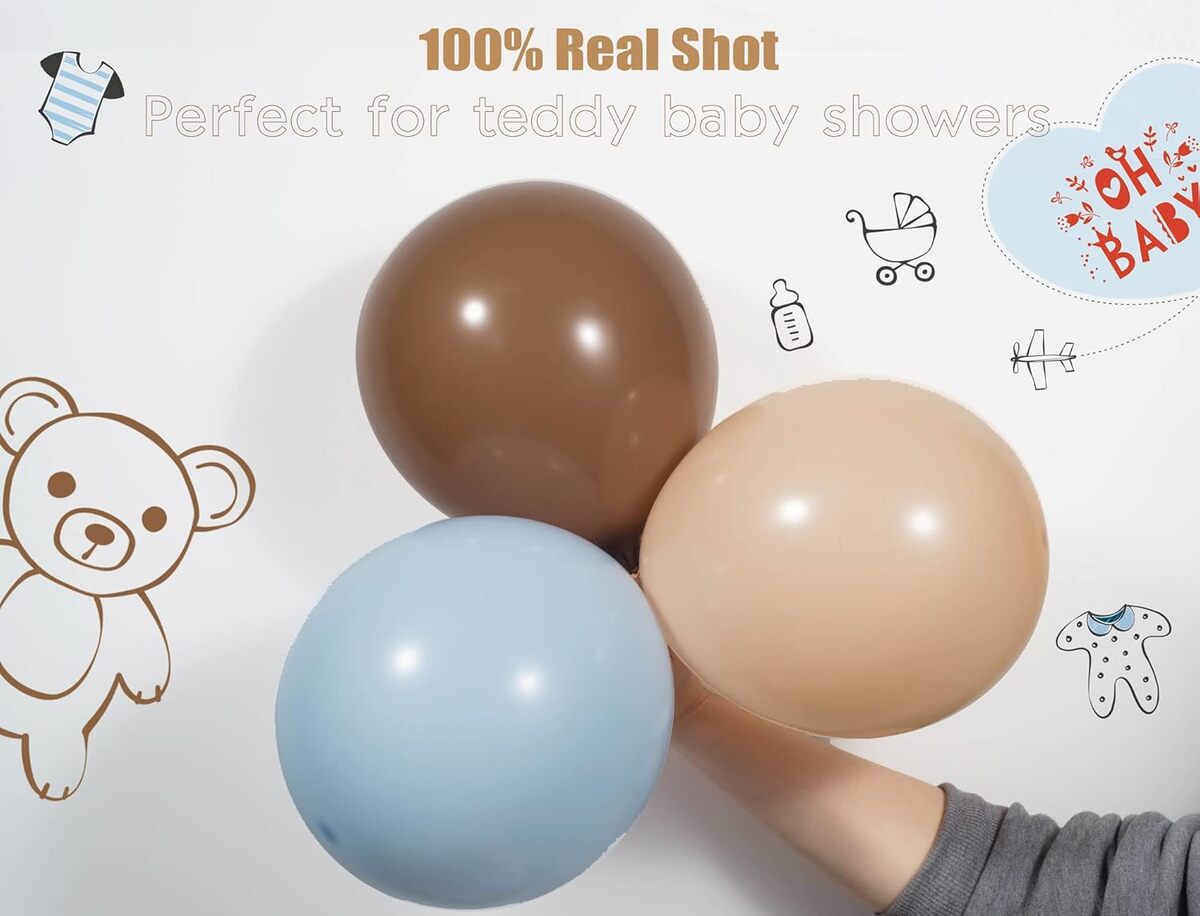 Bear Theme Balloon Arch Kit – Blue, Beige & Brown Garland for Baby Shower