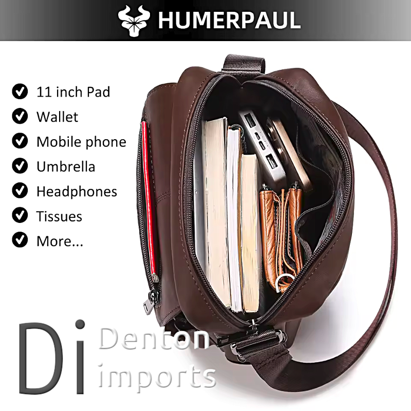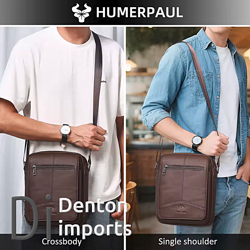 HUMERPAUL Genuine Leather Men's Shoulder Messenger Bag