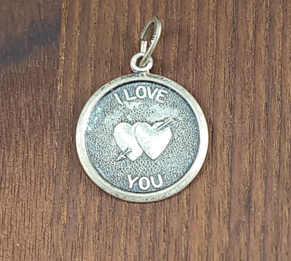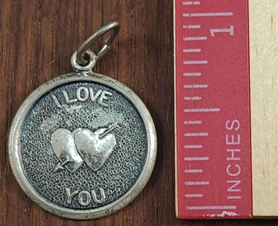 Vtg Solid .925 Sterling Silver I Love You Charm Hearts Arrow Disc Medallion