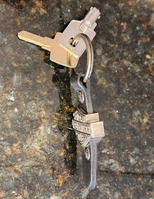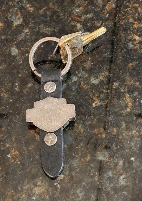 VTG Harley Davidson Shield On Leather Keychain With 2 Keys