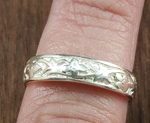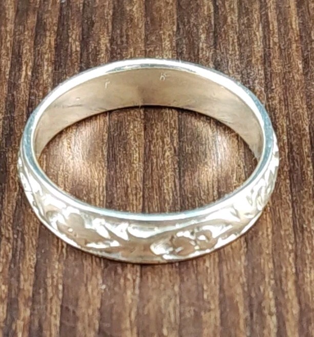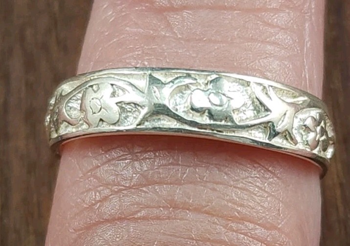 Vtg Solid .925 Sterling Silver Floral Etched Band Ring Scroll Design Gift