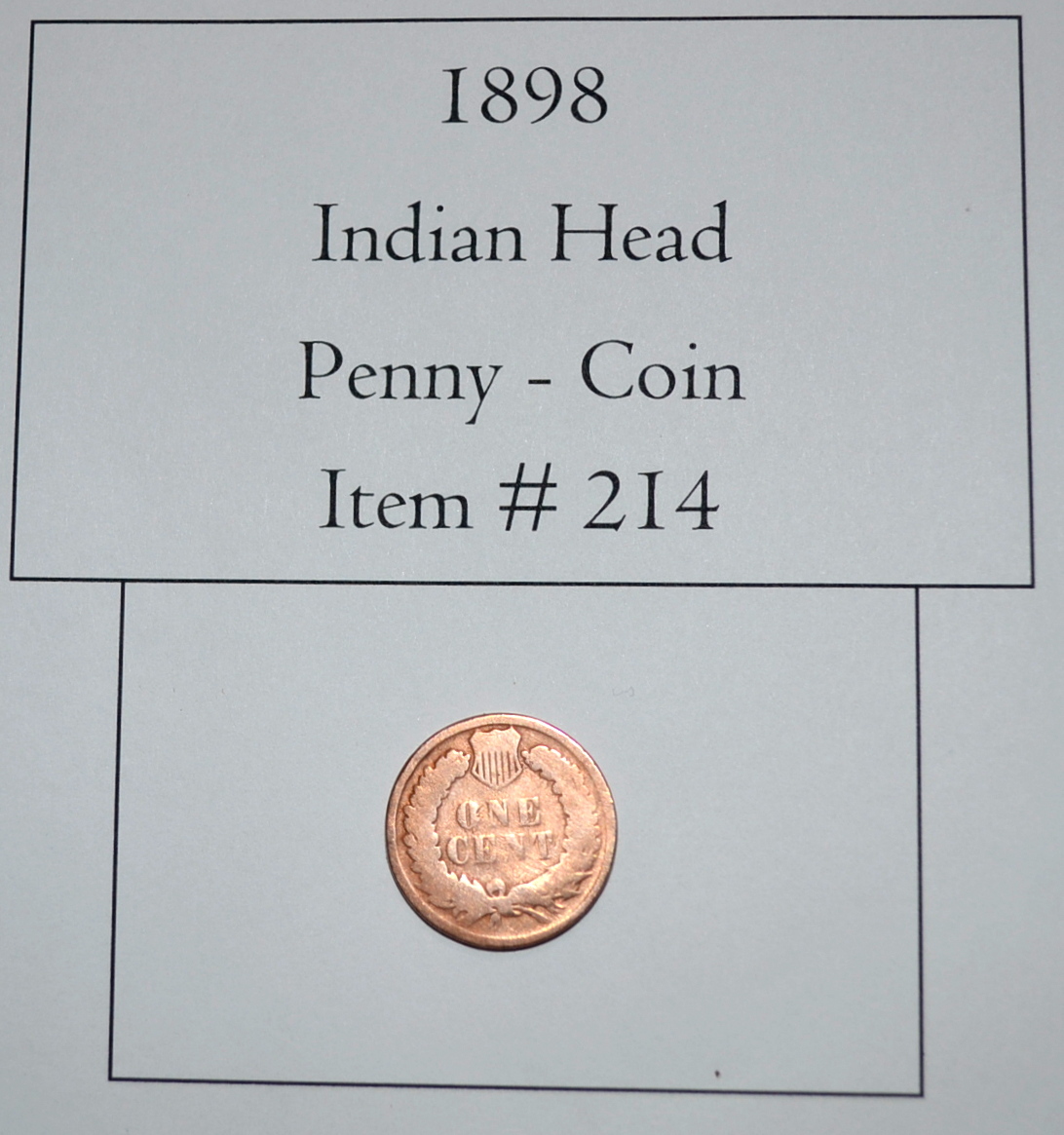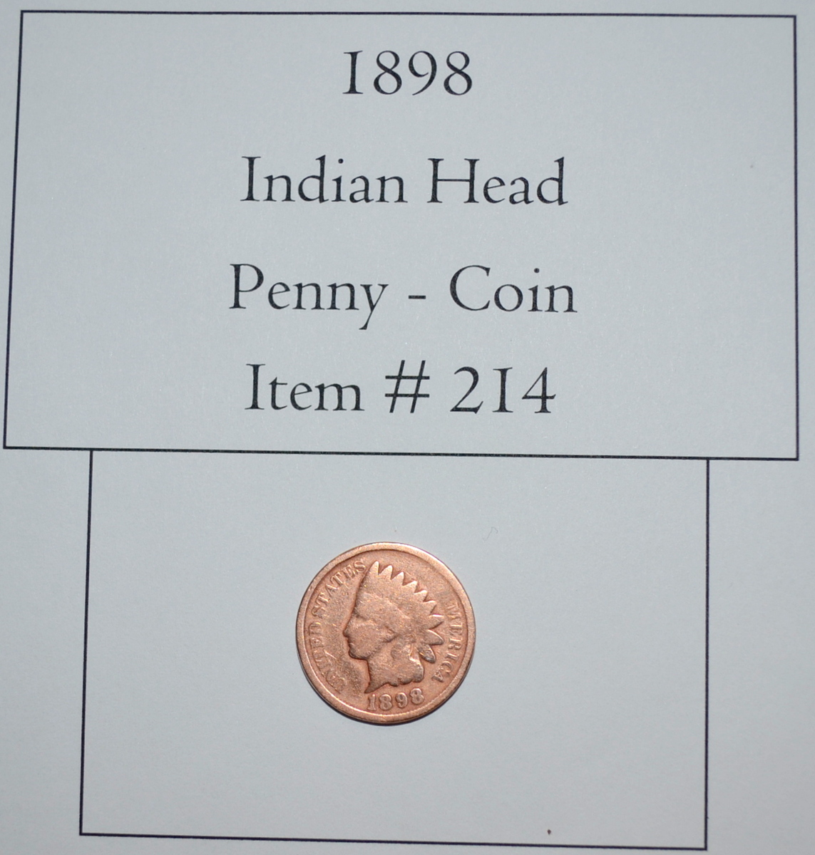Penny, 1898, Indian Head Penny, # 214, Indian head pennies, vintage coin