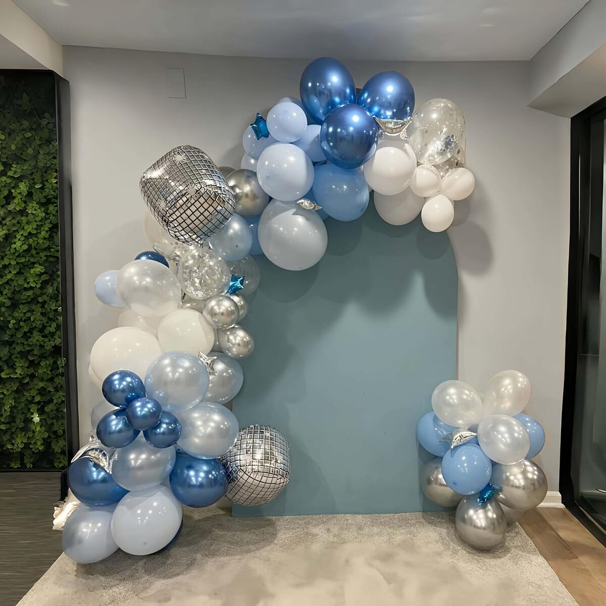Blue Balloon Arch Kit – Blue, White & Silver Garland with Disco & Star Balloons