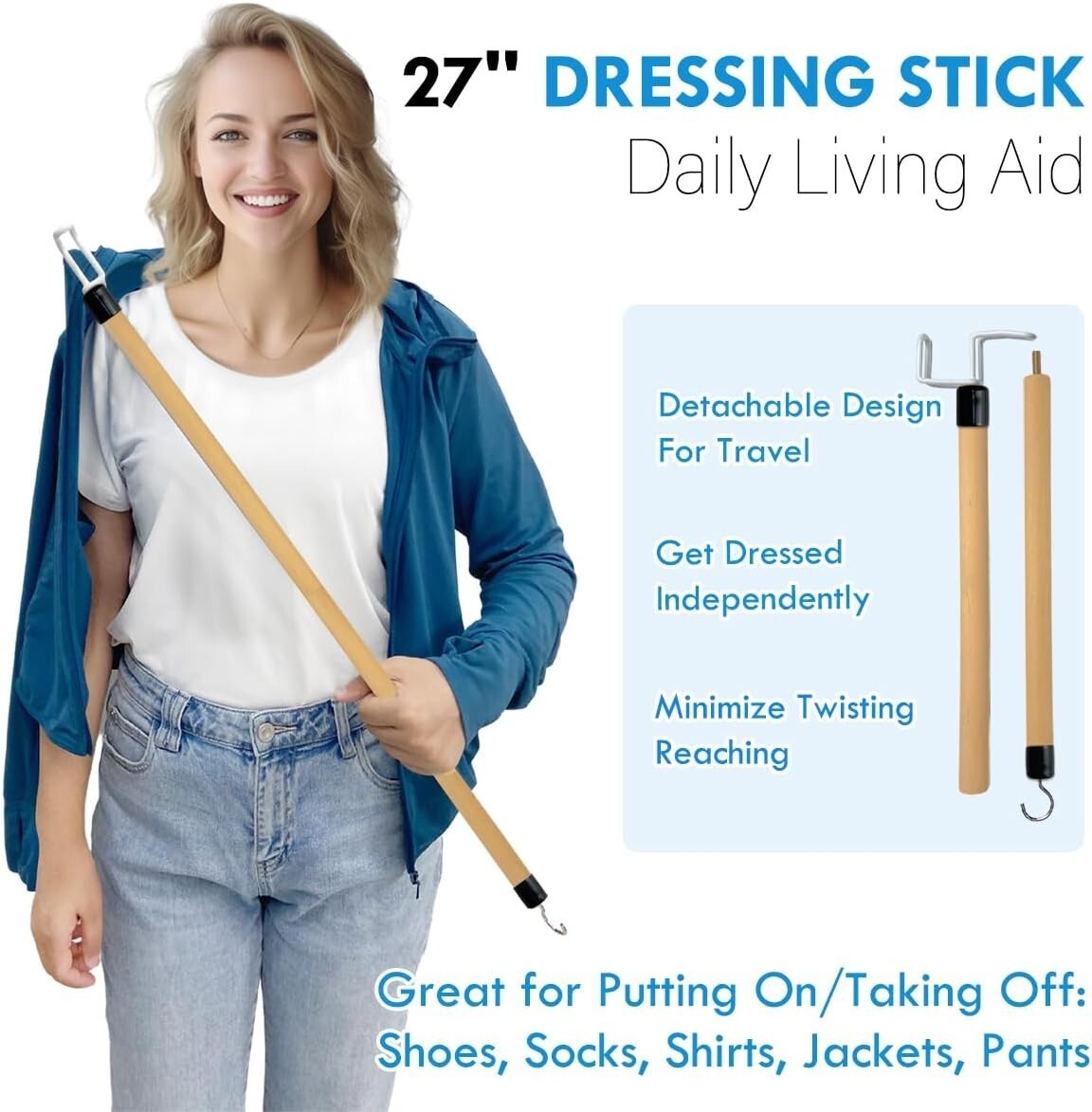 Dressing Stick and Shoehorn: Thoughtfully designed with a protective vinyl coating for a gentle grip on fabrics, perfect for easy dressing.