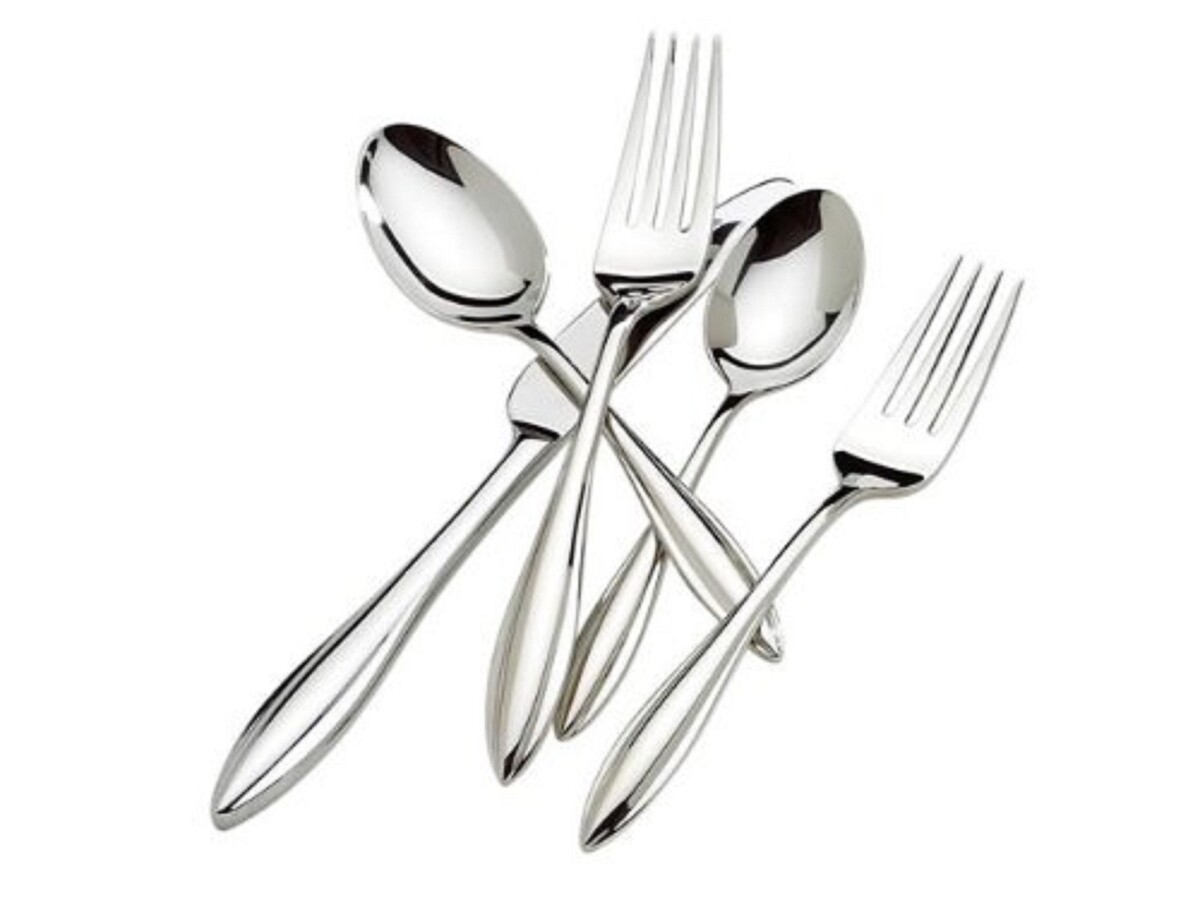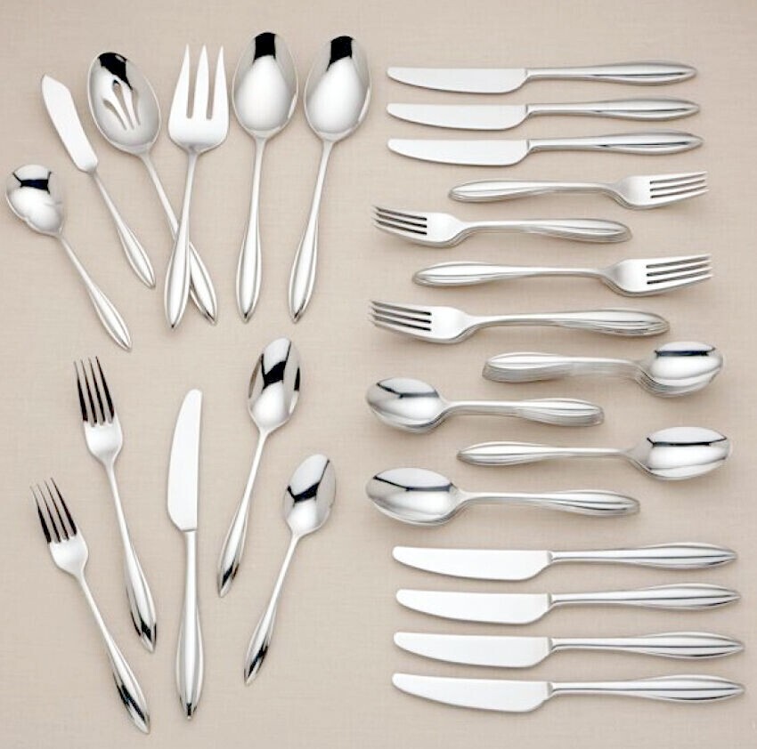 Each place setting includes place fork, place knife, place spoon, salad fork and teaspoon