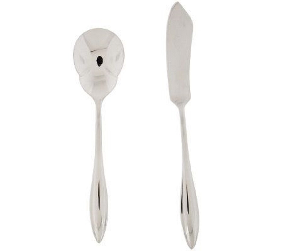 Hostess set includes cold meat fork, pierced tablespoon, 2 tablespoons, sugar spoon and butter knife