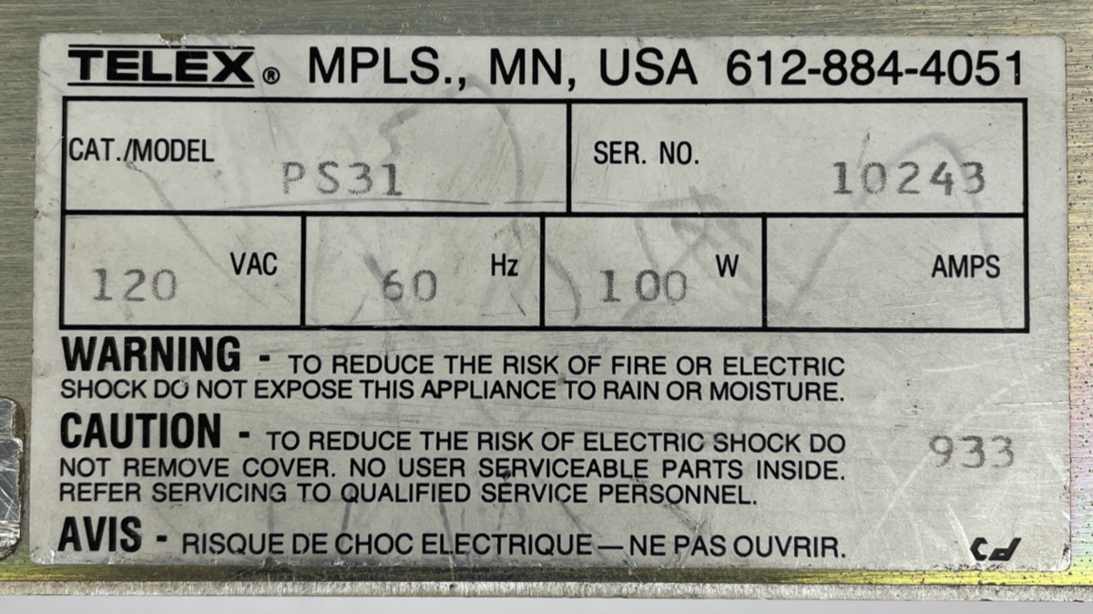 TELEX RTS SYSTEMS TW INTERCOM SYSTEM POWER SUPPLY MODEL : PS31 PS 31