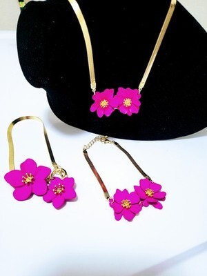 Elevate your style with this 3-Piece Jewelry Set. It includes a Pink Flowers Necklace, Bracelet, and Anklet. Perfect for women seeking fashion accessories. The set combines elegance with versatility, making it ideal for various occasions.