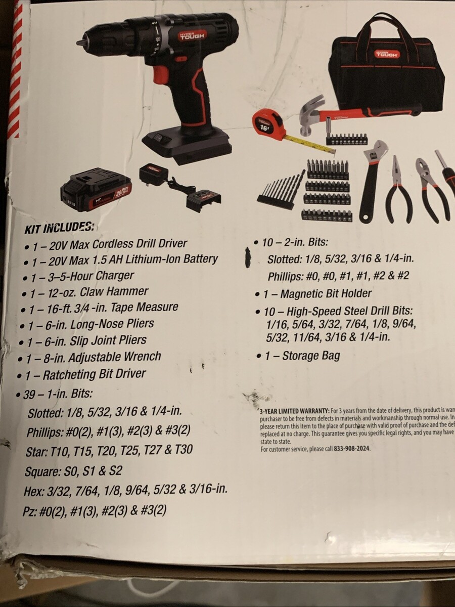 Hyper Tough 70-Piece Project Kit w/ Cordless Drill, Battery & Charger | DIY Tool