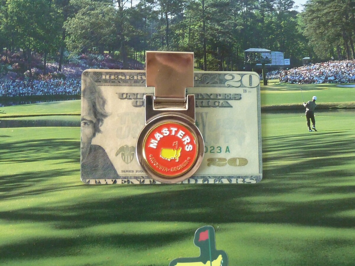 The Masters 25/26 Style Logo Red Spring Loaded Money Clip - Silver Plated Clip