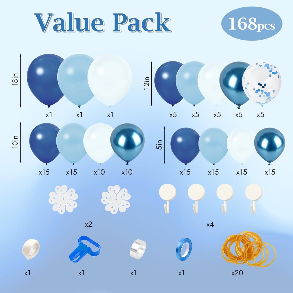 168pcs Blue Balloon Arch Kit Navy Confetti Metallic Party Decorations