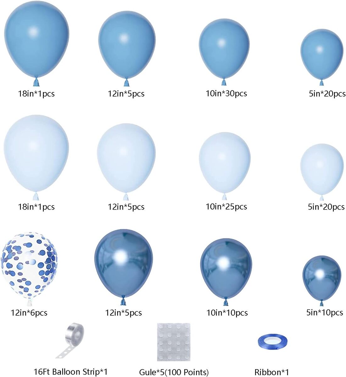 Blue Balloon Arch Kit Metallic Macaron Confetti Party Decorations
