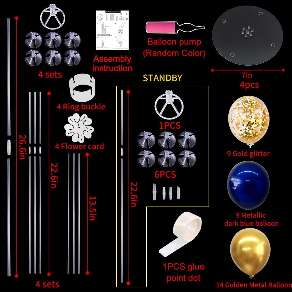 4pcs Navy Blue Gold Balloon Centerpieces Table Stand Party Decorations