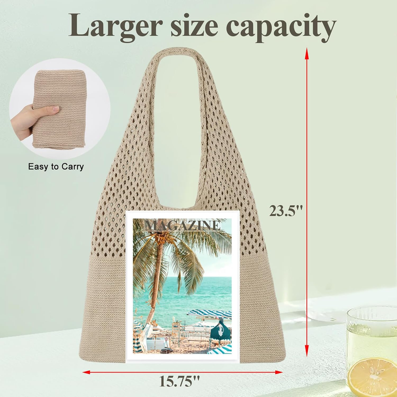 Crochet Mesh Beach Tote Bag, Knit Summer Vacation Aesthetic Boho Tote Bag for Women