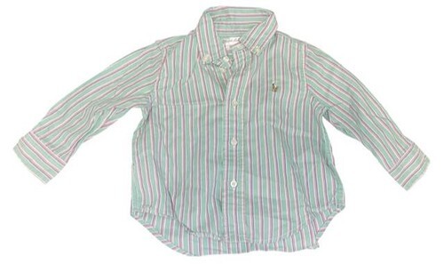 Ralph Lauren Baby Boys Striped Button Down Shirt Green Pink 12M Polo