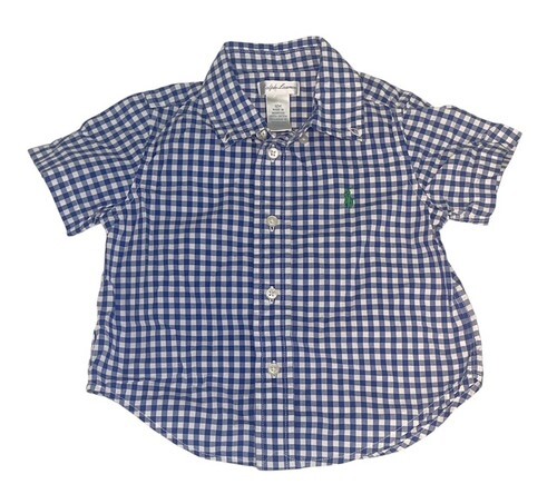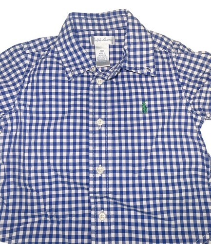 Ralph Lauren Baby Boys Gingham Button Down Shirt Blue White 12M Polo