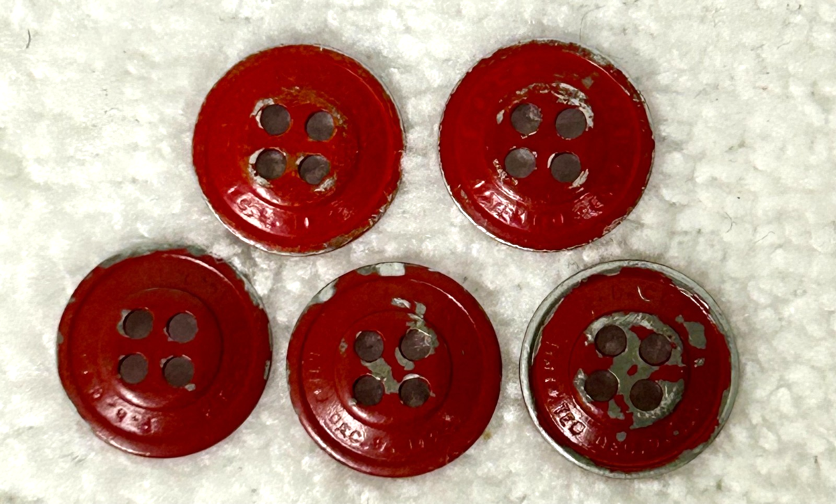 Vintage Red Painted Metal Work Clothing Yank Junior Buttons 5/8" Wide