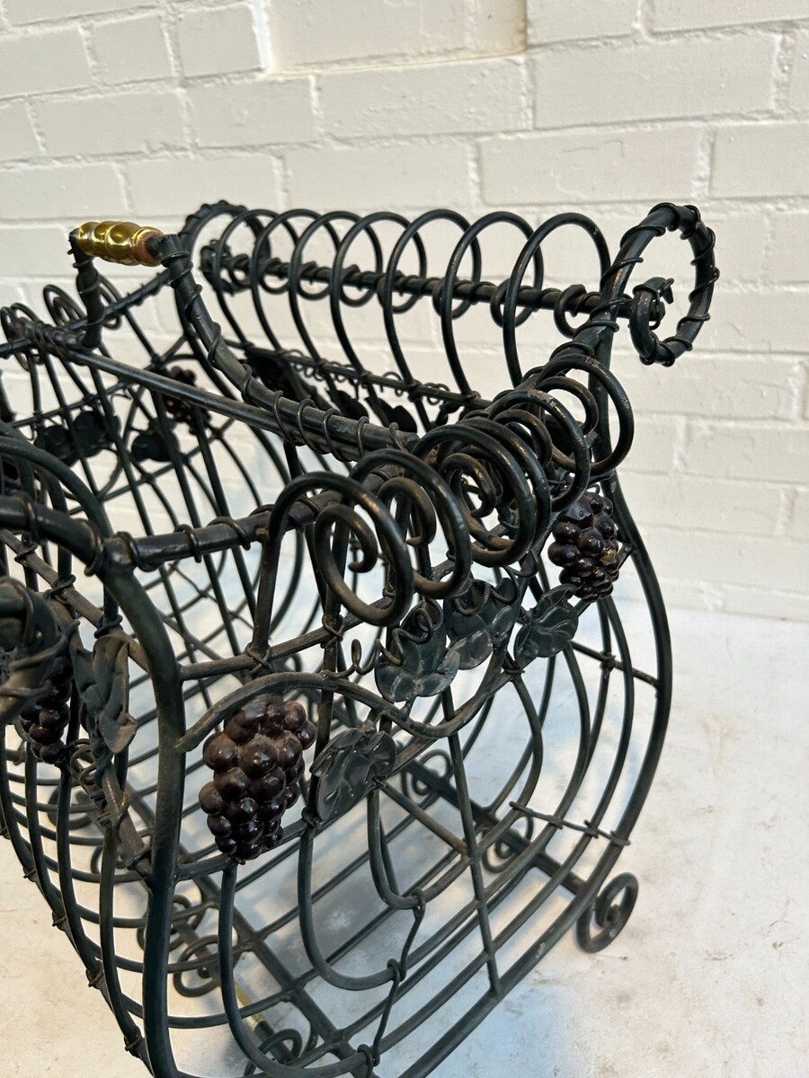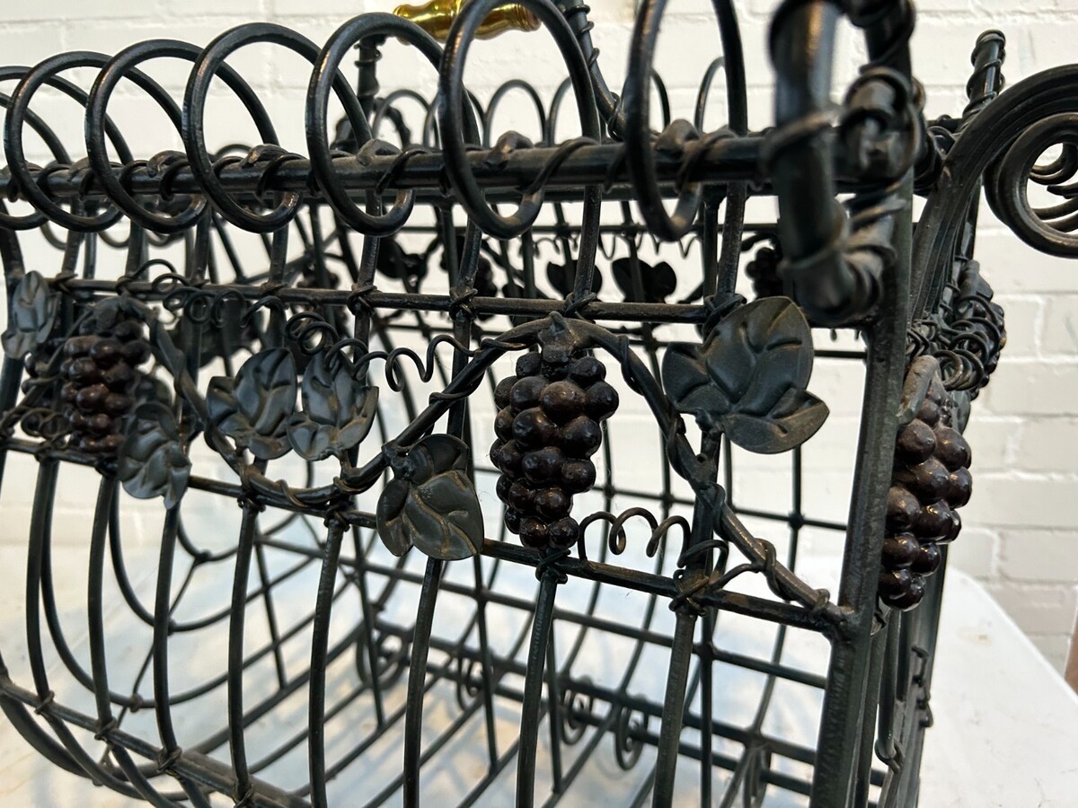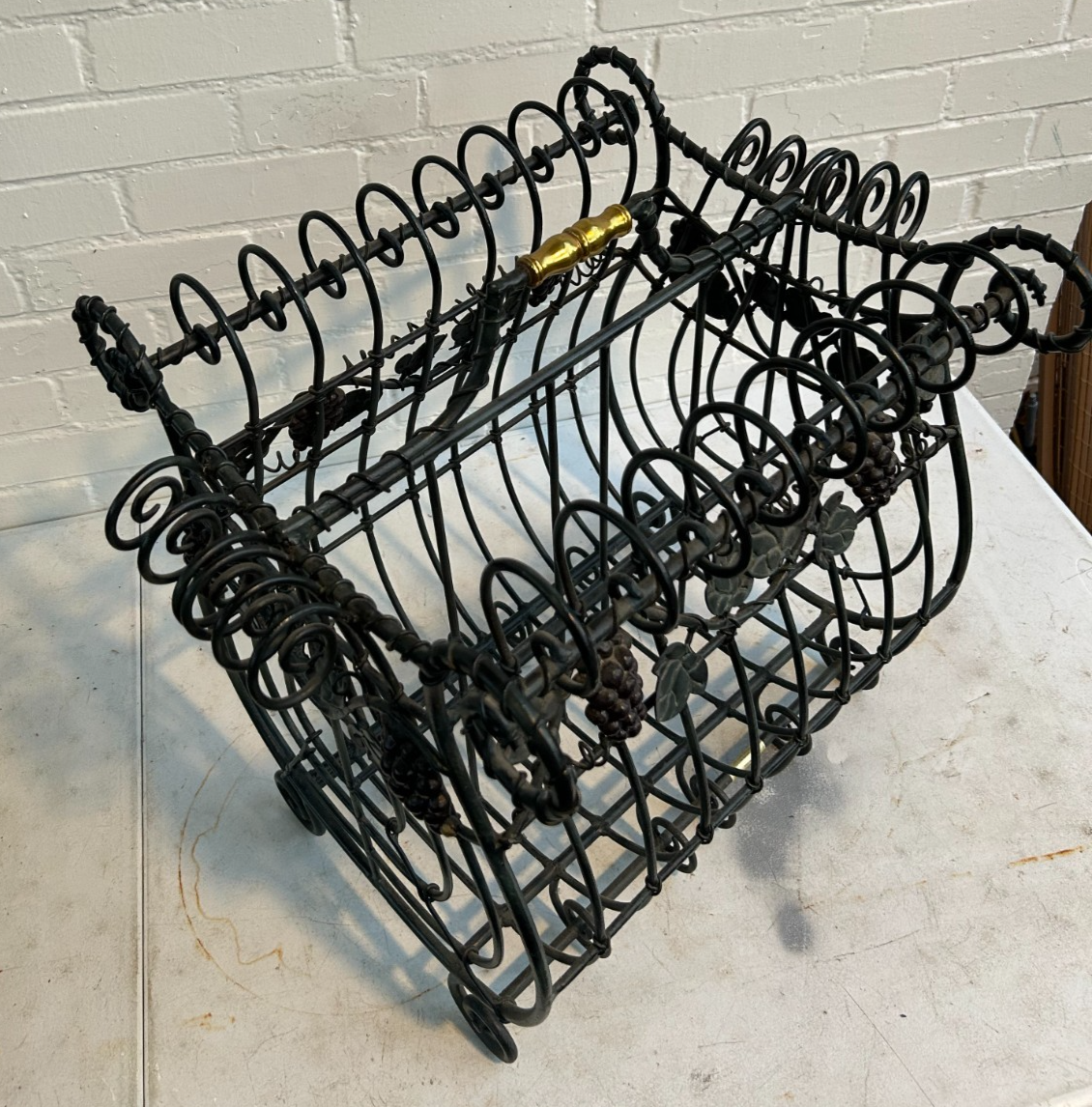 MAITLAND-SMITH VTG Iron Brass Magazine Rack: French Cottage Wine Country Leaves