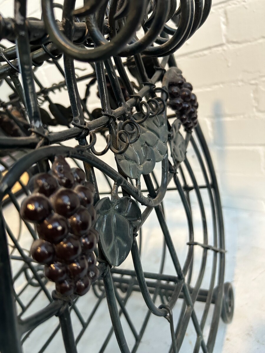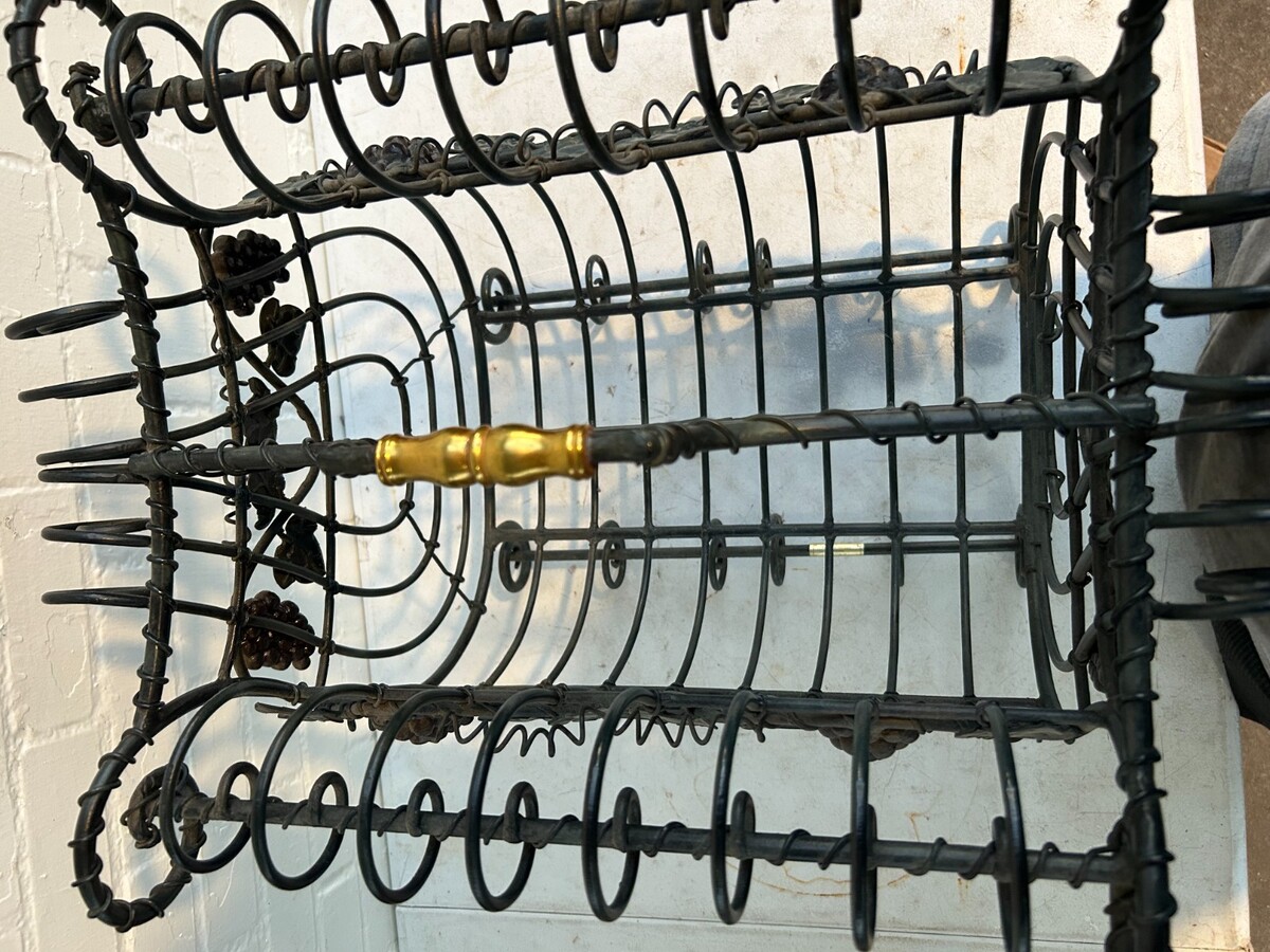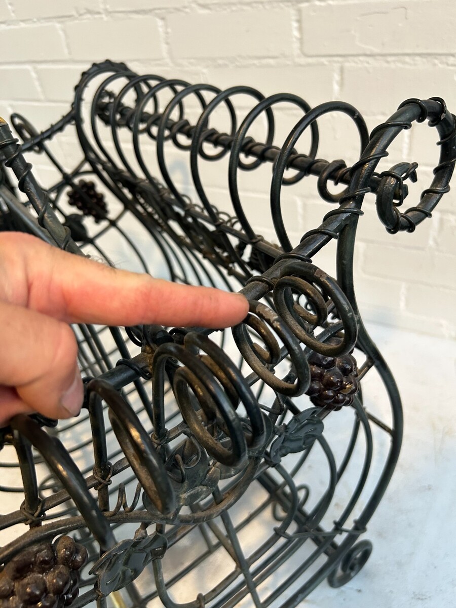MAITLAND-SMITH VTG Iron Brass Magazine Rack: French Cottage Wine Country Leaves