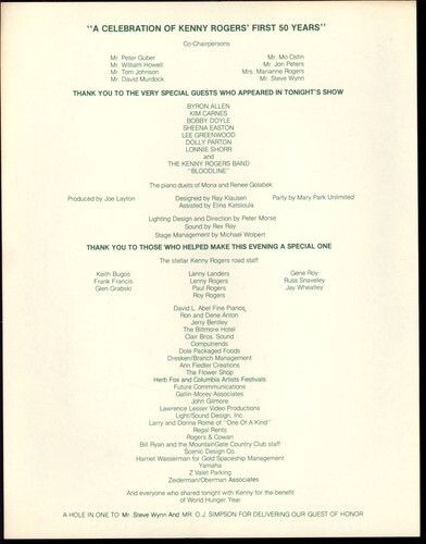 Kenny - DOLE presents KENNY ROGERS * 1988 Oversize program world hunger benefit