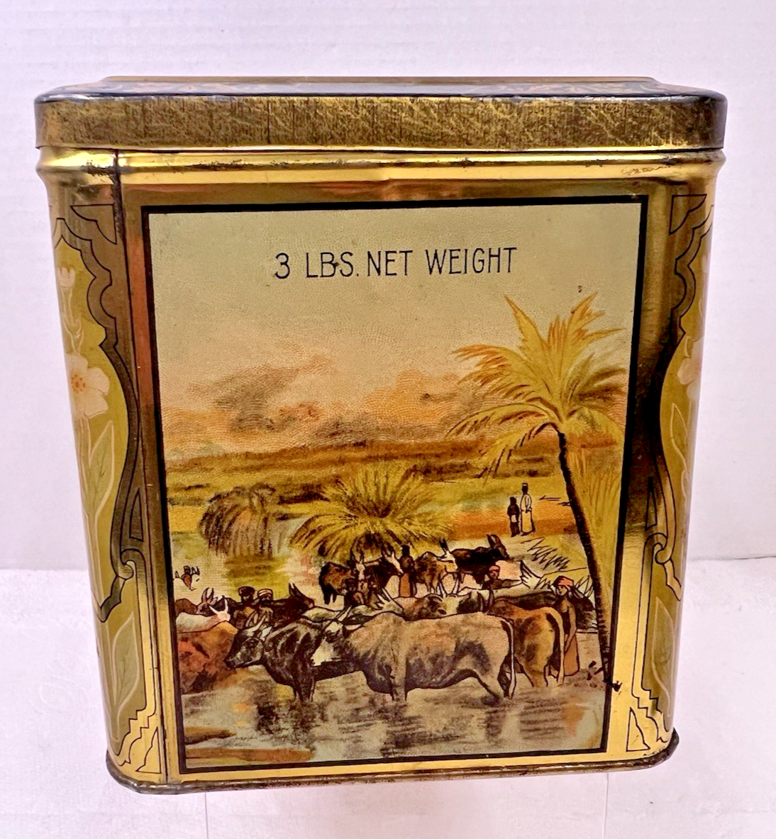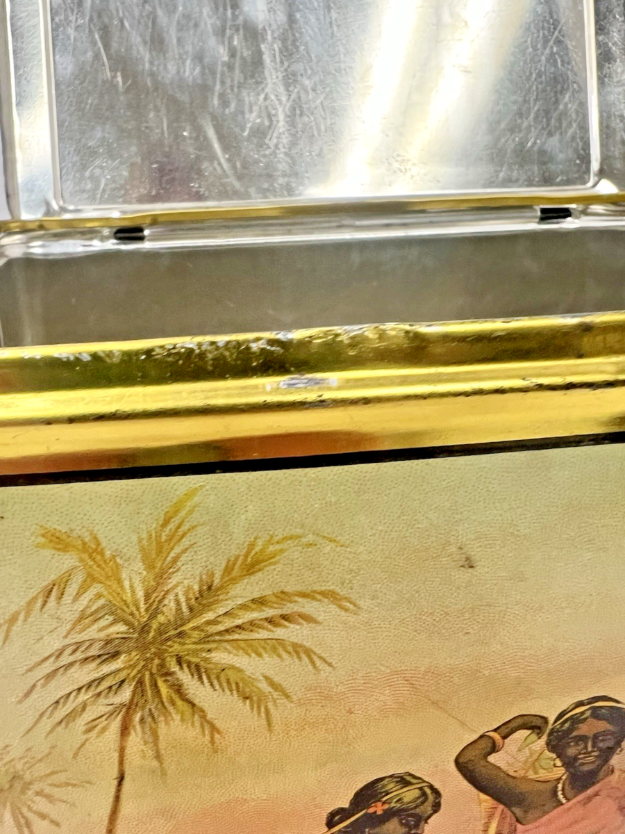 Large Antique Tea Tin Thomas J Lipton Ceylon Tea 3 Pound Advertising Women Cows IN very good shape a few tiny paint marks but overall really very nice! The box is 8.5 x 5.5 x 6 1/8 or so inches