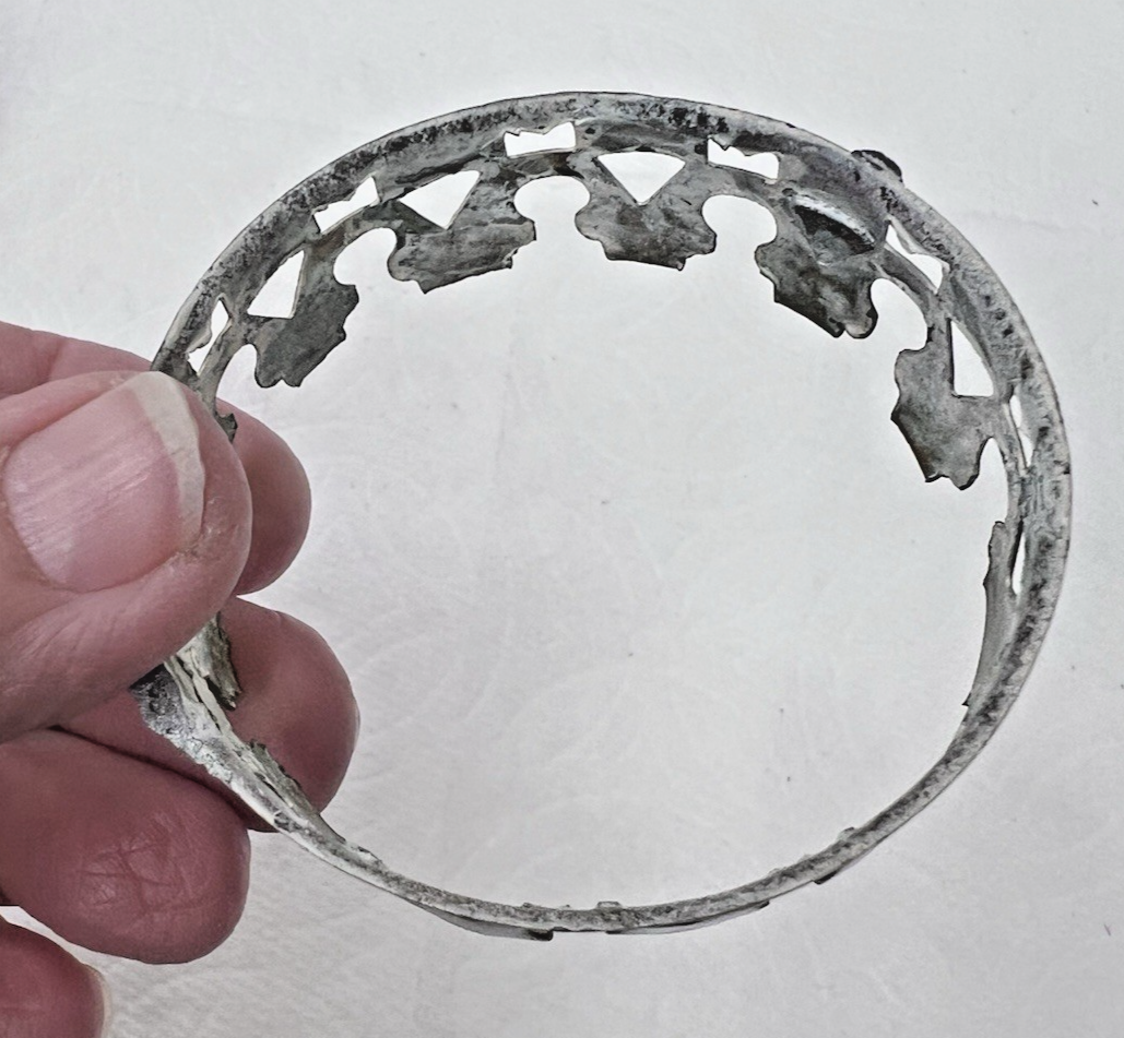 The main piece is 9 3/4 inches long the small crown like piece is 2 1/4 x 7/8 inches the round w knob is 2 3/16ths x 2 inches tall
