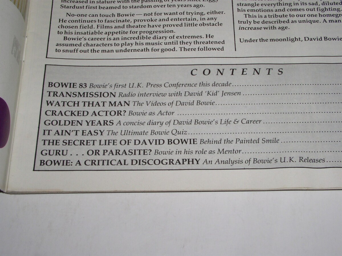 David Bowie A Celebration UK Magazine Booklet Vintage 1983 All Contents Bowie