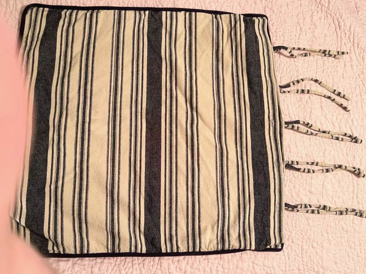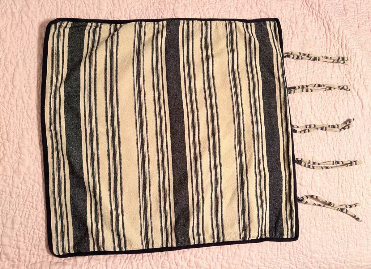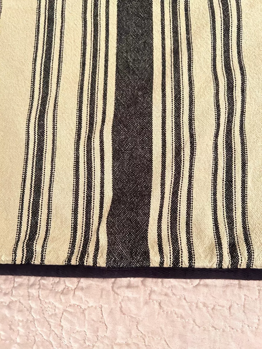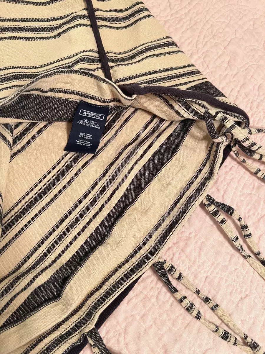 Ticking stripe - interior cuff, reverse to same; tie closure.