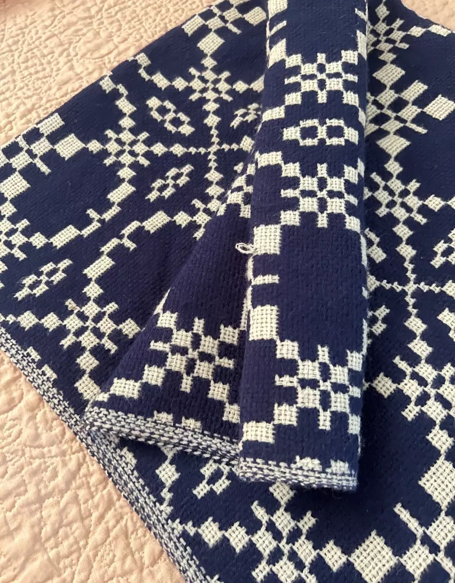 Handcrafted Overshot Lovers Knot Woven Navy and 50 similar items