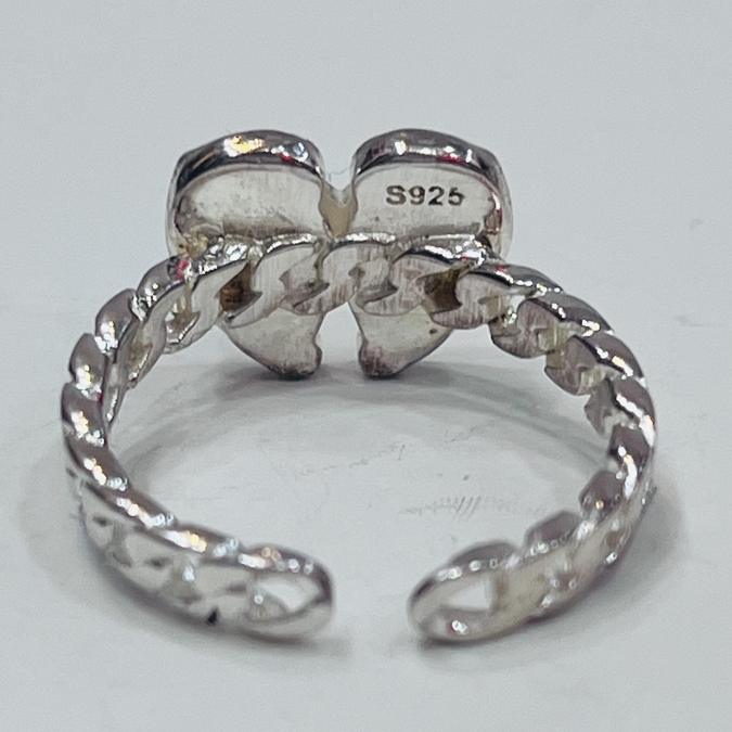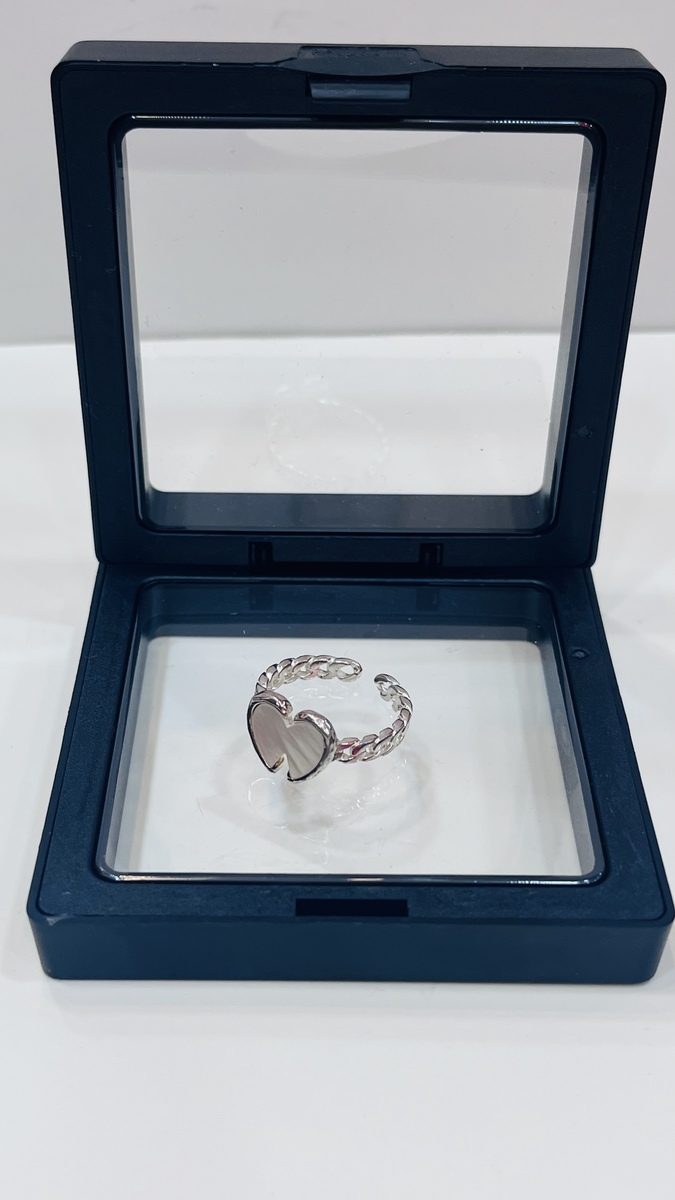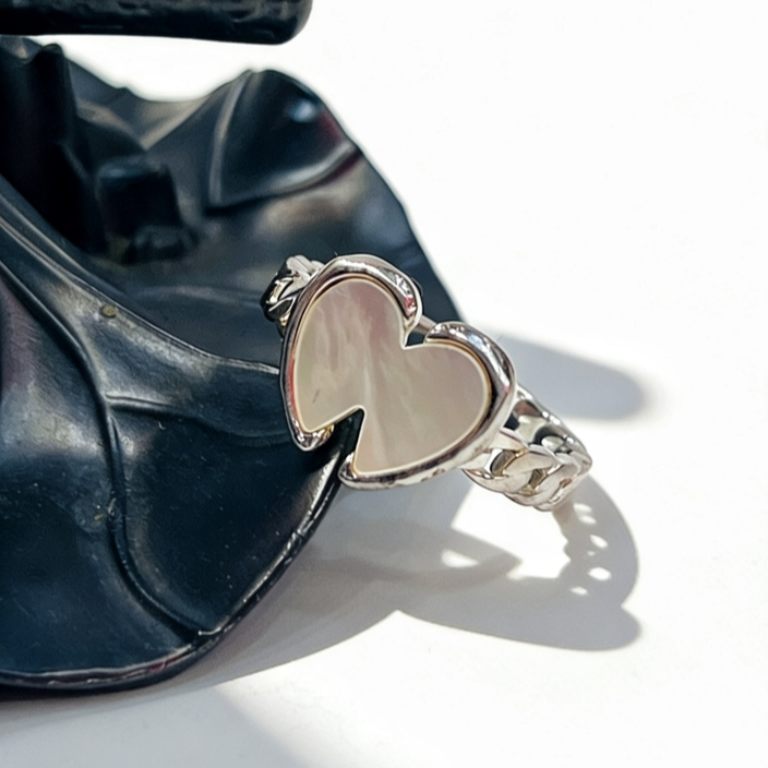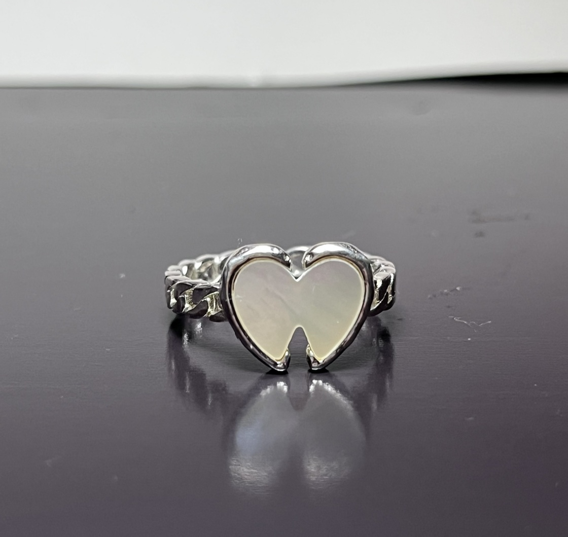 ? 925 Silver Synthetic Shell Heart Ring | 10x12mm | Chain Band | Adjustable ?