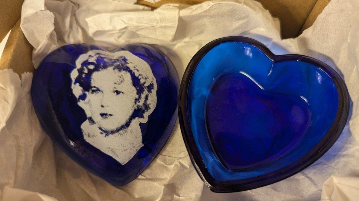 Vintage Cobalt Blue Shirley Temple Glass Heart Trinket Box