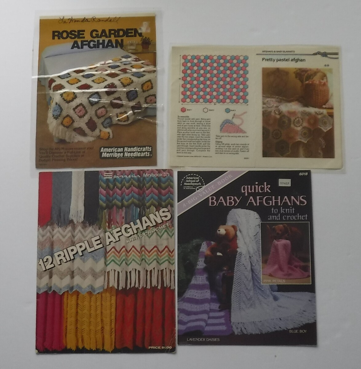 Vintage Single Crochet Pattern leaflets Lot of 4 Rose Garden Afghan